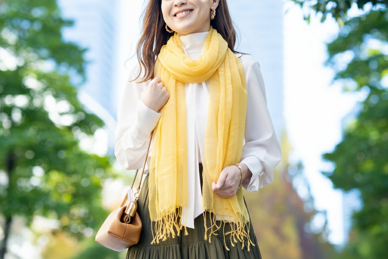 「北九州市の花・ひまわり」で染めた、鮮やかでやさしいシルクストール