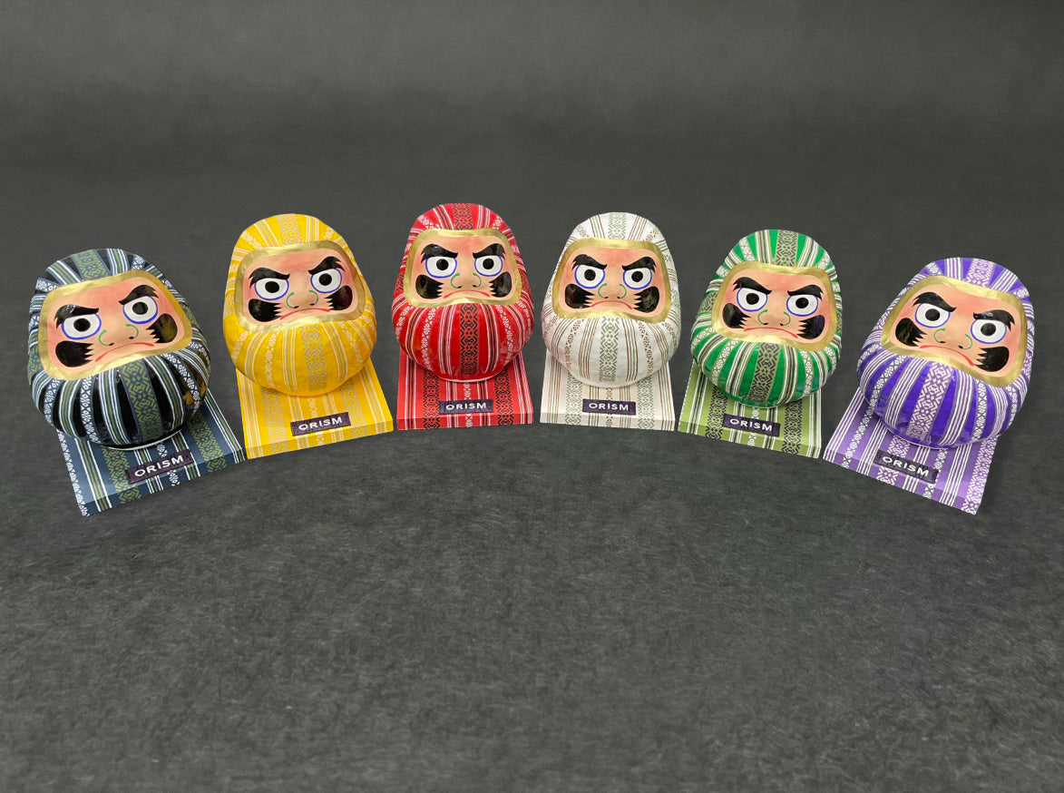 そこでHAKATA KENJO DARUMAは人形師・原田隆心氏監修の下、独自の解釈により その双方に込められた想い全てを取り入れた合計6色として再構成しました。